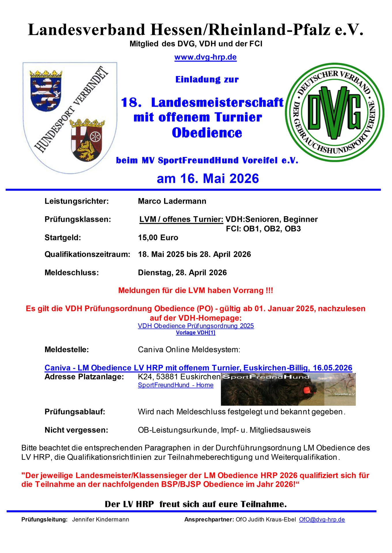 Weitere Infos hier: Einladung LM & LJM Obedience